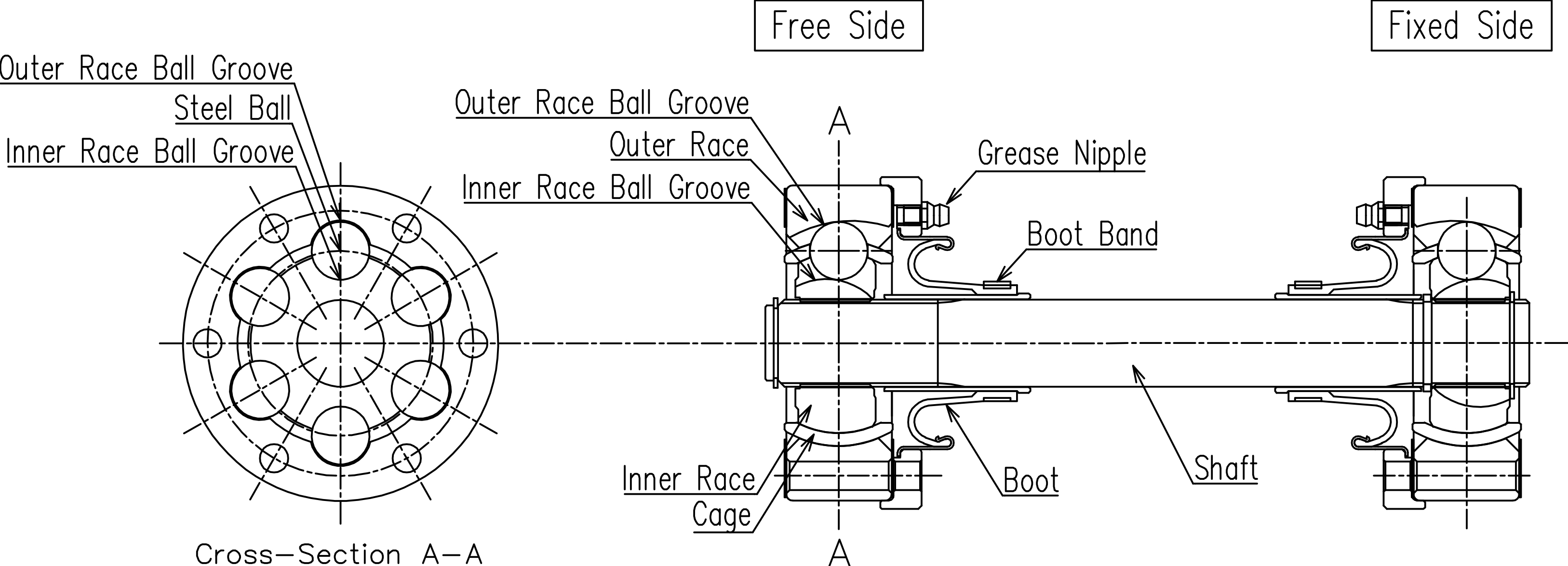 6 steel balls held in the cage are placed in the ball groove and transmit torque in the rotation direction.