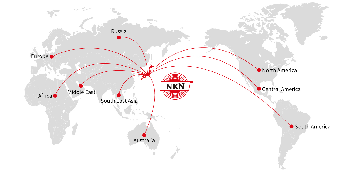NKN globally export products to overseas such as Middle East Asia, Southeast Asia, Latin America etc. based in Osaka, Japan. Our products are locally delivered to customers by our NKN authorized dealer.